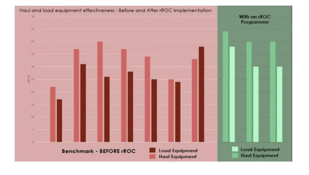 Significant improvement in Overall Equipment Effectiveness (OEE) for load and haul operations after implementing Ramjack’s Remote Operations Center — driven by increased utilization, reduced downtime, and smarter dispatching in action.