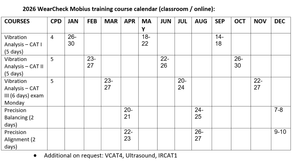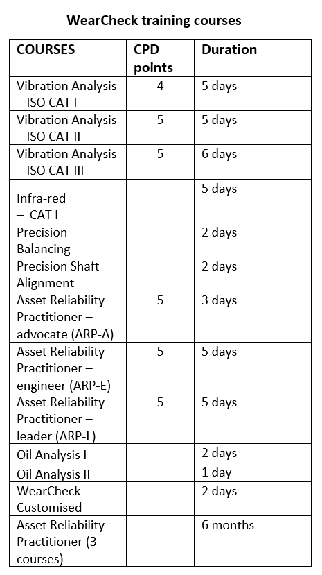 WearCheck has run oil analysis courses for more than 20 years and has been accredited to run Mobius courses since 2015. (The Mobius Institute is a global organisation that provides training and certification in reliability improvement, condition monitoring, and precision maintenance.)