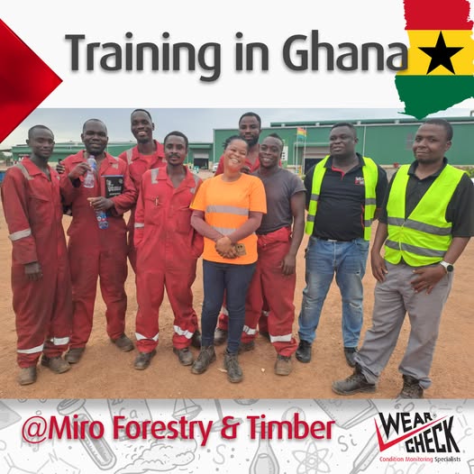 WearCheck Ghana recently conducted basic oil analysis training at Miro Forestry and Timber Products, in Afram Plains, Ghana. The trainees are pictured here with trainer, Daniel Boakye (2nd from right), who handles sales and technical service for WearCheck in Ghana.