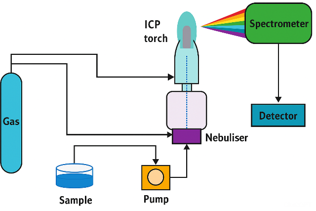 The process of operation involves sample introduction, atomisation, ionisation, excitation, emission, detection and quantification. The schematic of this process is outlined in Figure 1.