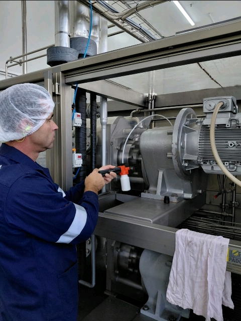One of WearCheck’s onsite sampling technicians, Jaco de Beer, takes an oil sample from a motor-driven centrifugal pump
